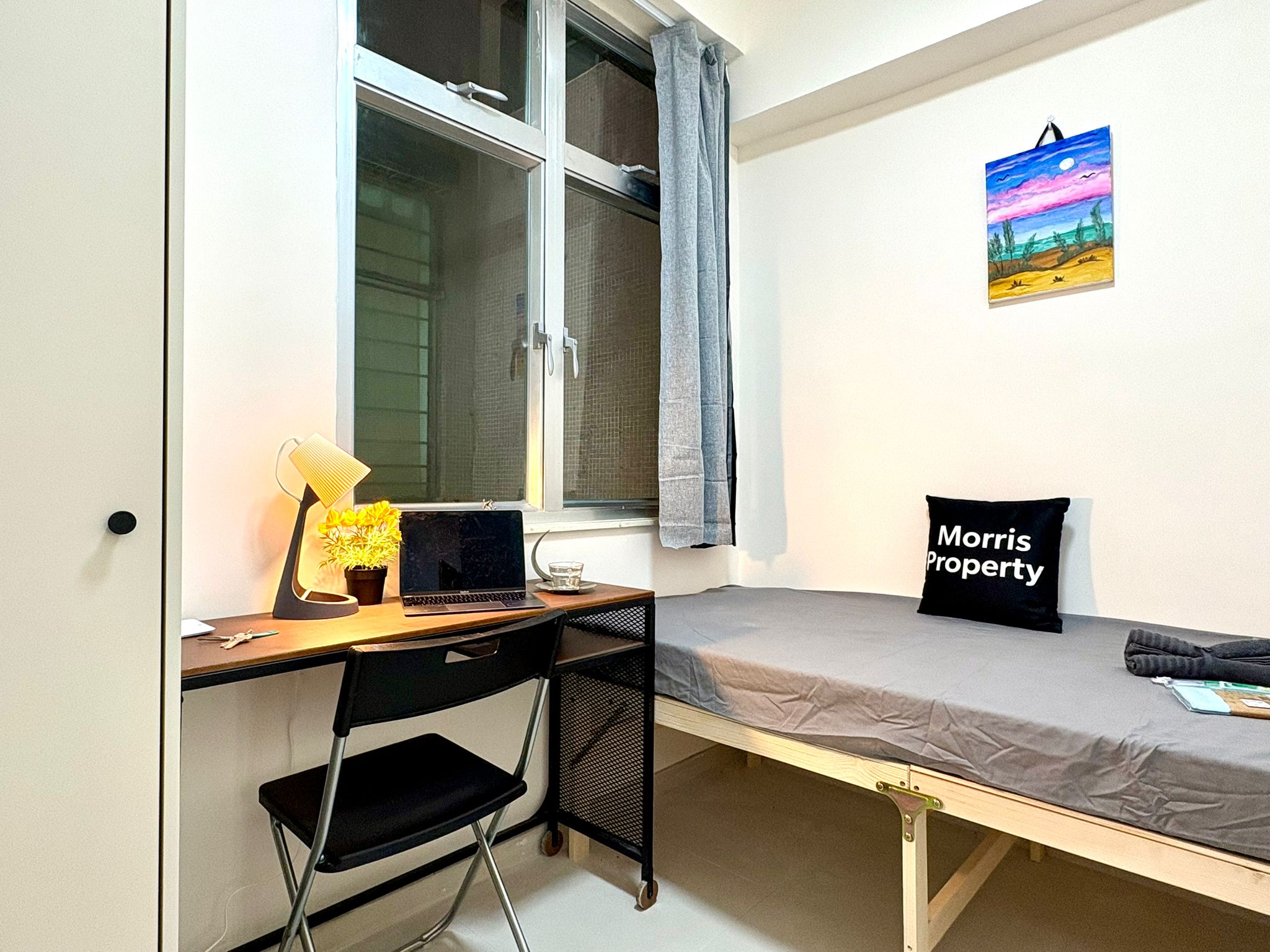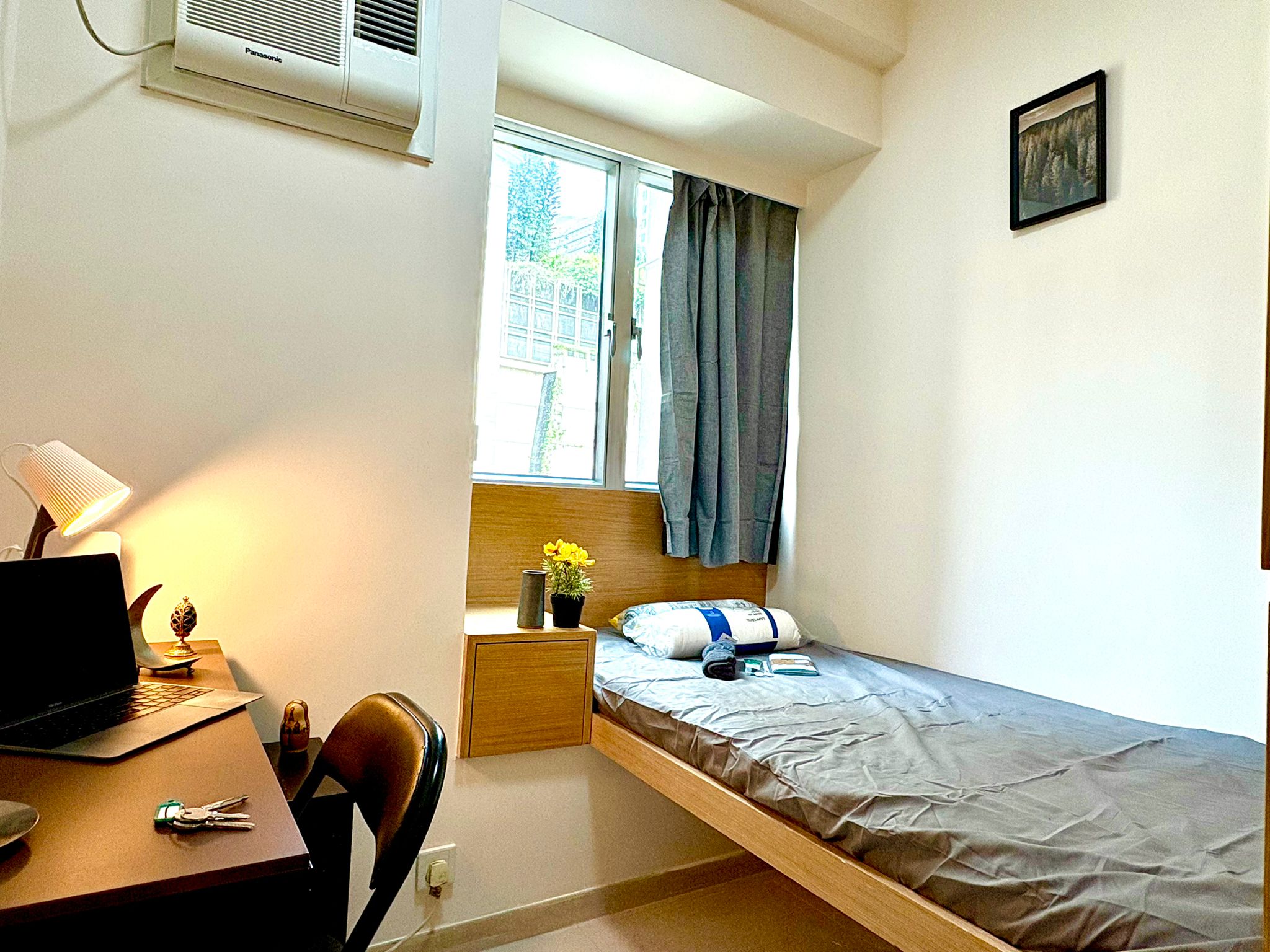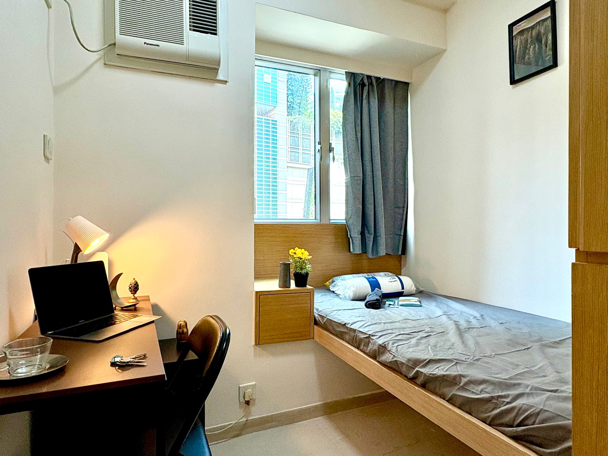 with Desk, AC, Closet, Chair, Window, Bedroom Lock, Electrical Converter, Light-blocking curtain